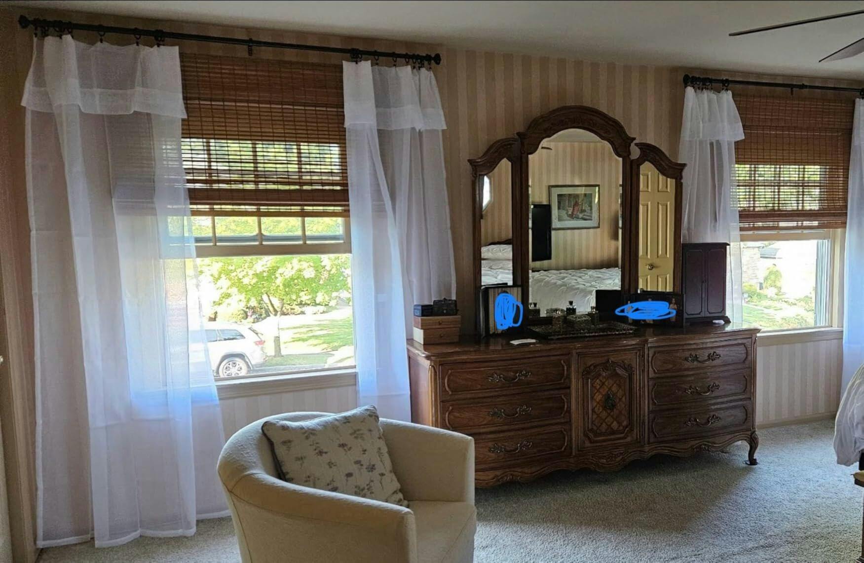 Bamboo shades gently filter light and offer moderate privacy — about 50% to 98%.