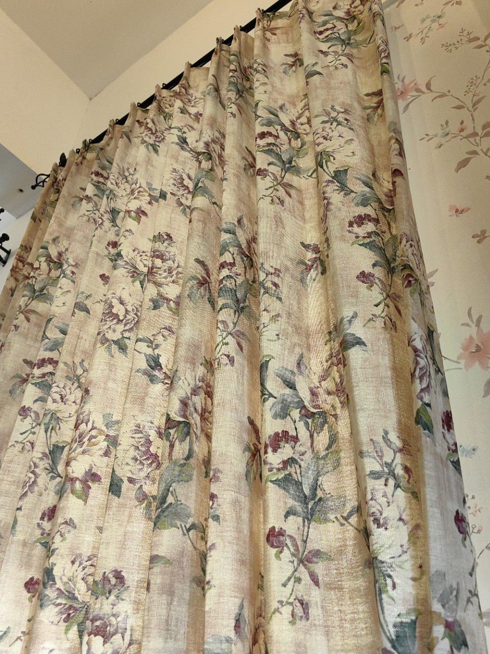 English Rose & Peony Floral Linen Curtains - Custom Romantic Botanical Drapes