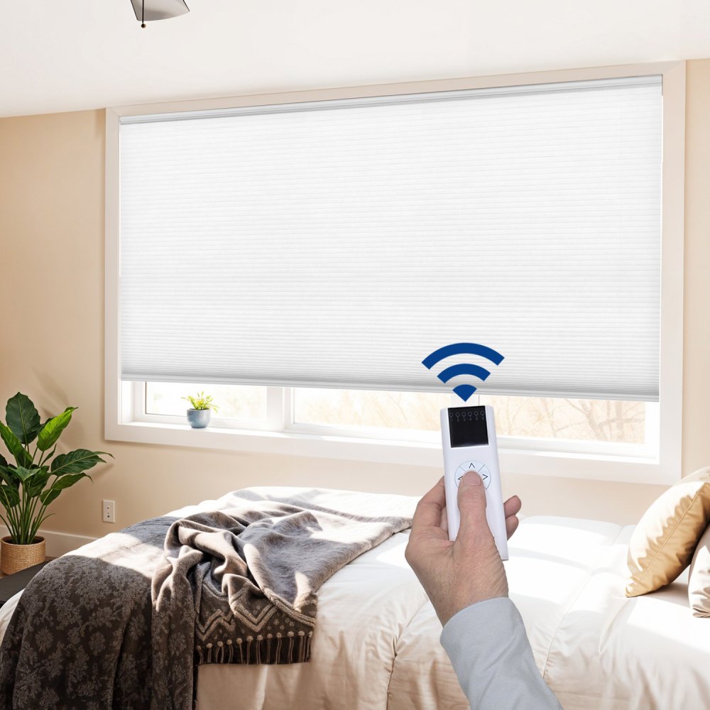 - Motorized – Effortlessly control your shades with the touch of a button.
