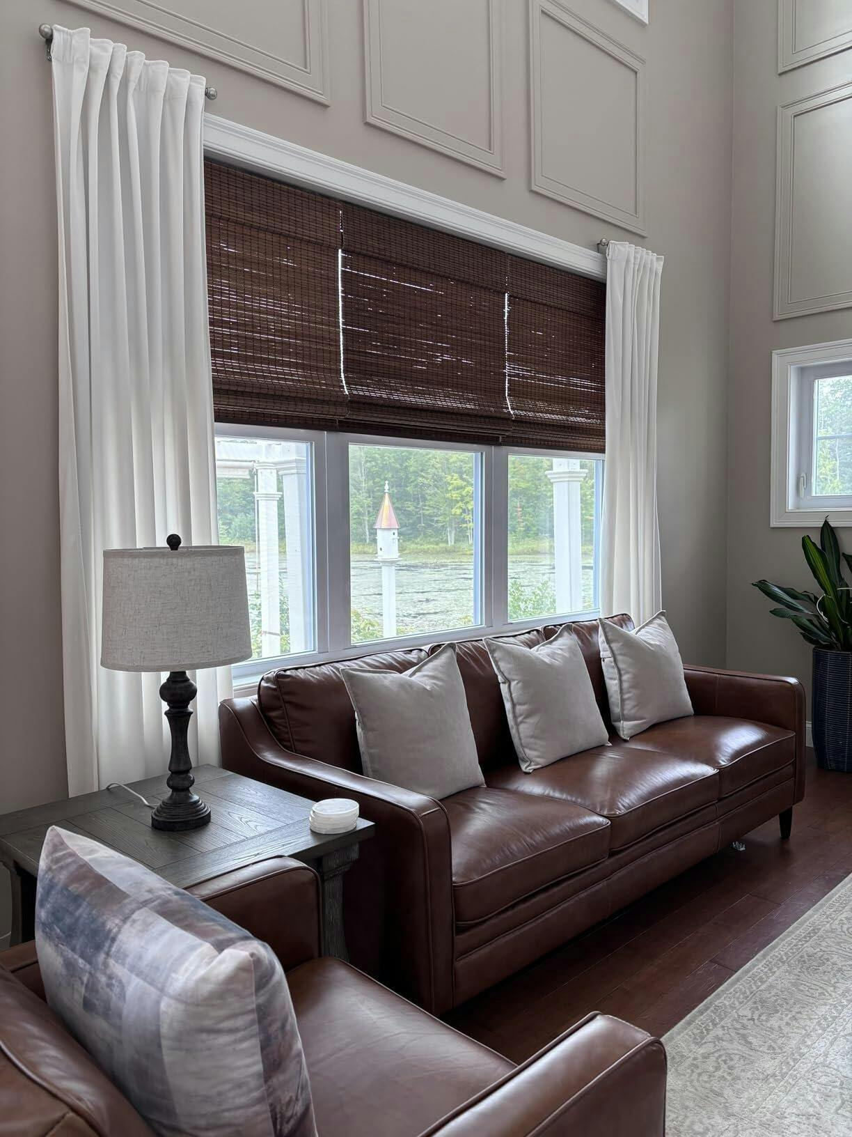 Pair your bamboo shades with flowing linen curtains to add a warm, layered finish — perfect for living rooms and bedrooms.